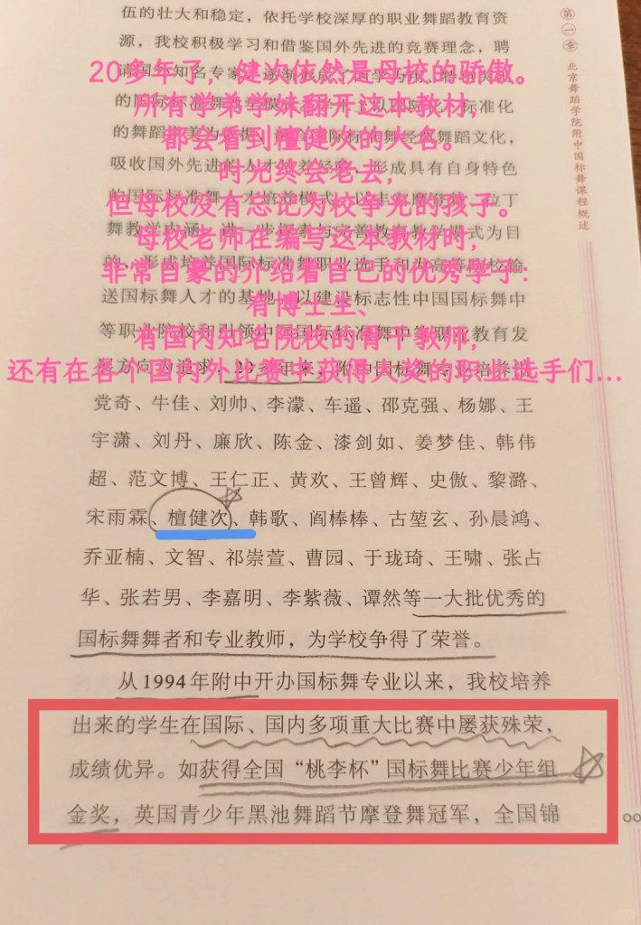 Tôi thấy tên Đàn Kiện Thứ trong sách giáo khoa của Trường Trung học trực thuộc Học viện Múa Bắc Kinh.