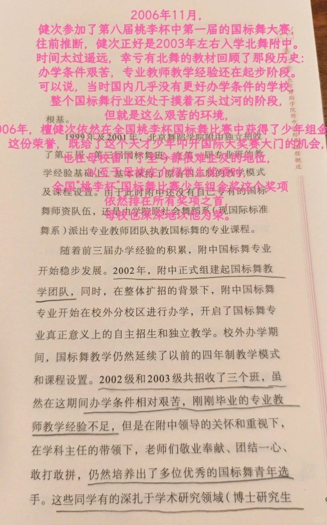 Cuốn sách giáo khoa khiêu vũ giao tiếp này, được biên soạn và xuất bản bởi Trường Trung học trực thuộc Học viện Khiêu vũ Bắc Kinh năm 2020, chứa 300 động tác khiêu vũ giao tiếp chuyên nghiệp, có thể nói là cuốn sách giáo khoa khiêu vũ giao tiếp chuyên nghiệp đầu tiên dành cho các trường trung học nghề cả trong và ngoài nước. Những cuốn sách giáo khoa chuyên nghiệp như vậy thường khó hiểu đối với người bình thường. Tuy nhiên, sau khi lướt qua cuốn sách gần 200 trang này và cảm thấy chóng mặt vì sự phân tích chi tiết các bước nhảy, tôi đã thực sự đánh giá cao sự phức tạp và khó khăn của khóa học khiêu vũ này…