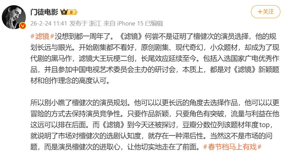 It’s already been a year! “Filter” has proven Tan Jianci’s casting choices, his long-term planning, and his vision. Initially, the series wasn’t well-received—an original, modern fantasy drama with a niche subject matter—yet it became a dark horse in the modern drama genre. The “Filter King’s” use of internet memes and fan creations has had a long-tail effect that continues to this day. Its selection as an outstanding work by the National Radio and Television Administration and participation in a seminar hosted by the China Television Arts Committee are essentially high recognitions of “Filter’s” novel subject matter and creative concept.